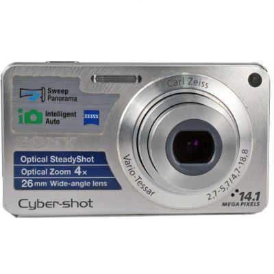 Sensor CCD 1/2.3'' com 12.1 megapixels (4000x3000pixels). Obturador com velocidades entre 15s e 1/1500s. Temporizador. Compensação à exposição +-2EV.